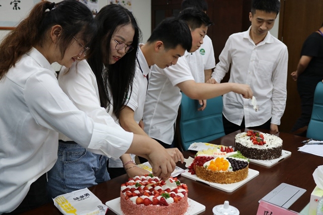會(huì)后,畢業(yè)生們與導(dǎo)師、同窗互贈(zèng)禮物、分享蛋糕、合影留念,為研究生生活畫(huà)上圓滿的句號(hào)。