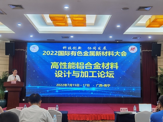 7月15日至17日,由中國有色金屬學(xué)會主辦的“2022國際有色金屬新材料大會”在廣西南寧召開,有研工研院鋁合金團(tuán)隊承辦高性能鋁合金材料設(shè)計與加工分會,來自相關(guān)行業(yè)領(lǐng)域的20余家單位近60名專家代表參加會議。