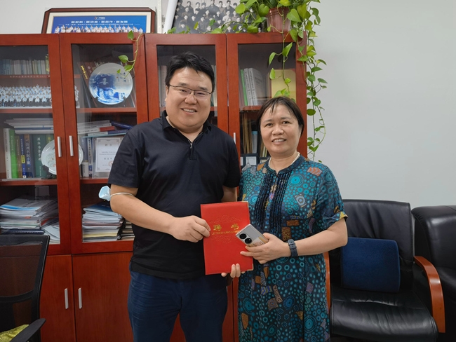 未能現(xiàn)場參會的導(dǎo)師黃小衛(wèi)院士與學(xué)生張殿凱在其辦公室“拜師”。