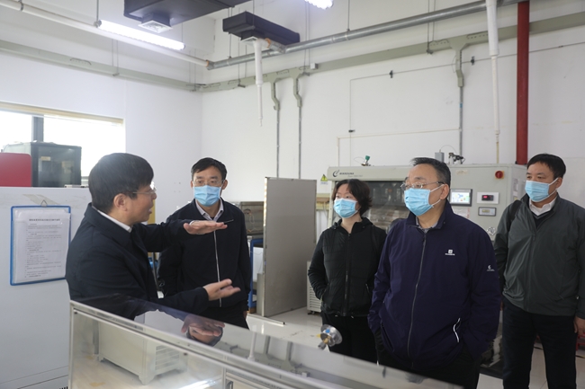 高繼軒一行聽(tīng)取了蔣利軍對(duì)有研工研院固態(tài)儲(chǔ)氫20多年創(chuàng)新發(fā)展情況的介紹,實(shí)地考察了儲(chǔ)氫材料與裝置性能評(píng)價(jià)實(shí)驗(yàn)室、儲(chǔ)氫材料制造線、系統(tǒng)安全評(píng)價(jià)實(shí)驗(yàn)室及固態(tài)儲(chǔ)氫燃料電池冷鏈物流車等,詢問(wèn)了儲(chǔ)氫罐等特種設(shè)備安全生產(chǎn)情況。