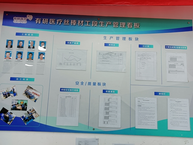 有研醫(yī)療選取生產(chǎn)制造部絲棒材工段為試點(diǎn)區(qū)域。針對(duì)人員、物料、設(shè)備、安全、品質(zhì)、標(biāo)準(zhǔn)化等方面維度進(jìn)行目視化改善,按照打造精品、標(biāo)桿和亮點(diǎn)理念,開展安全目視化建設(shè)工作。在全公司范圍內(nèi)開展相互交流學(xué)習(xí),各部門結(jié)合自身特點(diǎn)逐步實(shí)行并深入推進(jìn)開展安全目視化管理,不斷加強(qiáng)與完善生產(chǎn)現(xiàn)場(chǎng)的安全目視化管理提升工作。