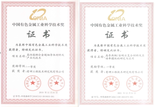 銅合金研究所成功開發(fā)了具有國(guó)際先進(jìn)水平的第四代銅/金剛石熱管理材料,打通了材料設(shè)計(jì)制備、產(chǎn)品精密加工和表面處理的全流程脈絡(luò),形成了具有自主知識(shí)產(chǎn)權(quán)的技術(shù)體系。實(shí)現(xiàn)了高導(dǎo)熱、高強(qiáng)度、熱膨脹系數(shù)可調(diào)銅/金剛石復(fù)合材料的國(guó)產(chǎn)化替代,填補(bǔ)了國(guó)內(nèi)技術(shù)和產(chǎn)品空白,滿足了國(guó)內(nèi)高功率芯片封裝領(lǐng)域?qū)Ω邔?dǎo)熱材料的需求,從根本上扭轉(zhuǎn)了之前完全依賴進(jìn)口的不利局面。相關(guān)產(chǎn)品和技術(shù)獲得2021年中國(guó)有色金屬工業(yè)科學(xué)技術(shù)獎(jiǎng)一等獎(jiǎng),入選中國(guó)有色金屬工業(yè)十大科技進(jìn)展,入選國(guó)務(wù)院國(guó)資委發(fā)布的中央企業(yè)科技創(chuàng)新成果推薦目錄。
