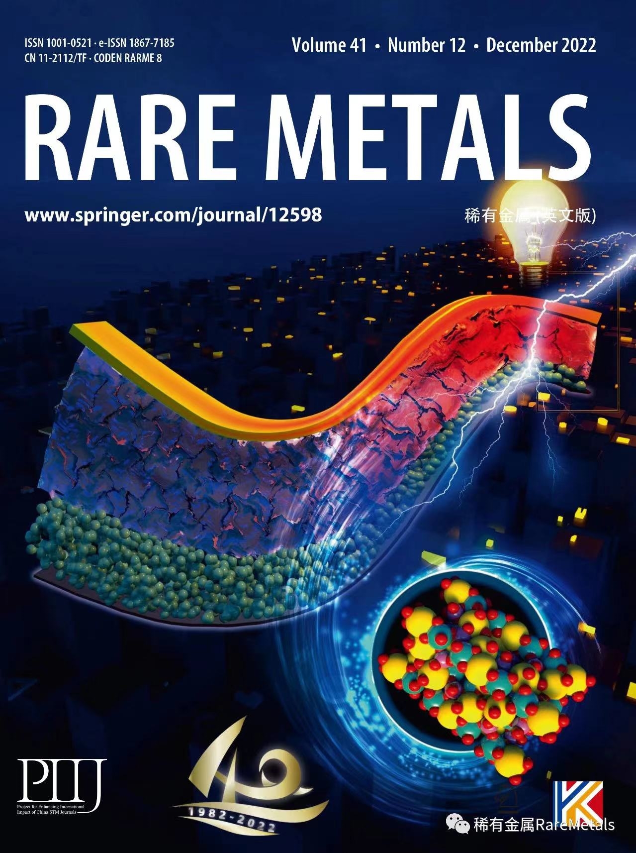 《稀有金屬(英文版)》,月刊,由中國有色金屬學(xué)會(huì)、中國有研科技集團(tuán)有限公司主辦,有科期刊出版(北京)有限公司出版。目前被SCIE,EI,CSA,CAS,SCOPUS等國際著名檢索系統(tǒng)或數(shù)據(jù)庫列為收錄源期刊,最新JCR影響因子6.318,位于國際冶金工程類Q1區(qū),TOP6期刊。致力于出版和傳播稀有金屬領(lǐng)域高水平研究成果,建立科學(xué)家和工程師之間的溝通平臺(tái)。報(bào)道內(nèi)容涵蓋了稀有金屬和有色金屬選礦、冶煉、合金加工、材料研制和理化分析測(cè)試等方面的科研成果以及稀有金屬在新材料(包括超導(dǎo)體、半導(dǎo)體、化合物和陶瓷)中的應(yīng)用。中國科技期刊卓越行動(dòng)計(jì)劃入選期刊,中國科技期刊國際影響力提升計(jì)劃項(xiàng)目入選期刊,首屆“百強(qiáng)報(bào)刊”入選期刊,中國最具國際影響力學(xué)術(shù)期刊(連續(xù)十一年),“第六屆中國科協(xié)優(yōu)秀科技論文遴選計(jì)劃”入選期刊,中國有色金屬科技期刊集群旗艦刊,“有色金屬領(lǐng)域高質(zhì)量科技期刊分級(jí)目錄”T1級(jí)別期刊,“中國有色金屬學(xué)會(huì)學(xué)術(shù)期刊一等獎(jiǎng)”期刊,中國科協(xié)主管科技期刊審讀優(yōu)級(jí)期刊,代表中國出版參加2017年法蘭克福國際書展。