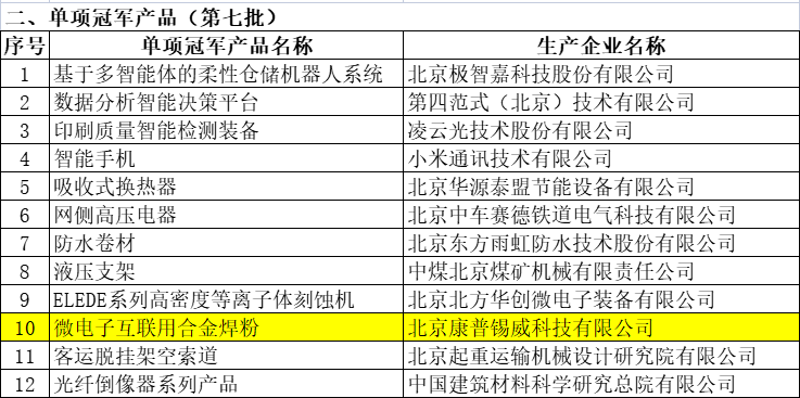 此前,由工業(yè)和信息化部、中國(guó)工業(yè)經(jīng)濟(jì)聯(lián)合會(huì)組織開(kāi)展的第七批制造業(yè)單項(xiàng)冠軍企業(yè)(產(chǎn)品)培育遴選工作已完成相關(guān)審核并公示獲評(píng)企業(yè)名單,有研粉材所屬公司康普錫威研發(fā)的“微電子互連用合金焊粉”獲評(píng)國(guó)家第七批制造業(yè)單項(xiàng)冠軍產(chǎn)品。此外,作為首批國(guó)家級(jí)專精特新“小巨人”企業(yè),康普錫威通過(guò)復(fù)核。