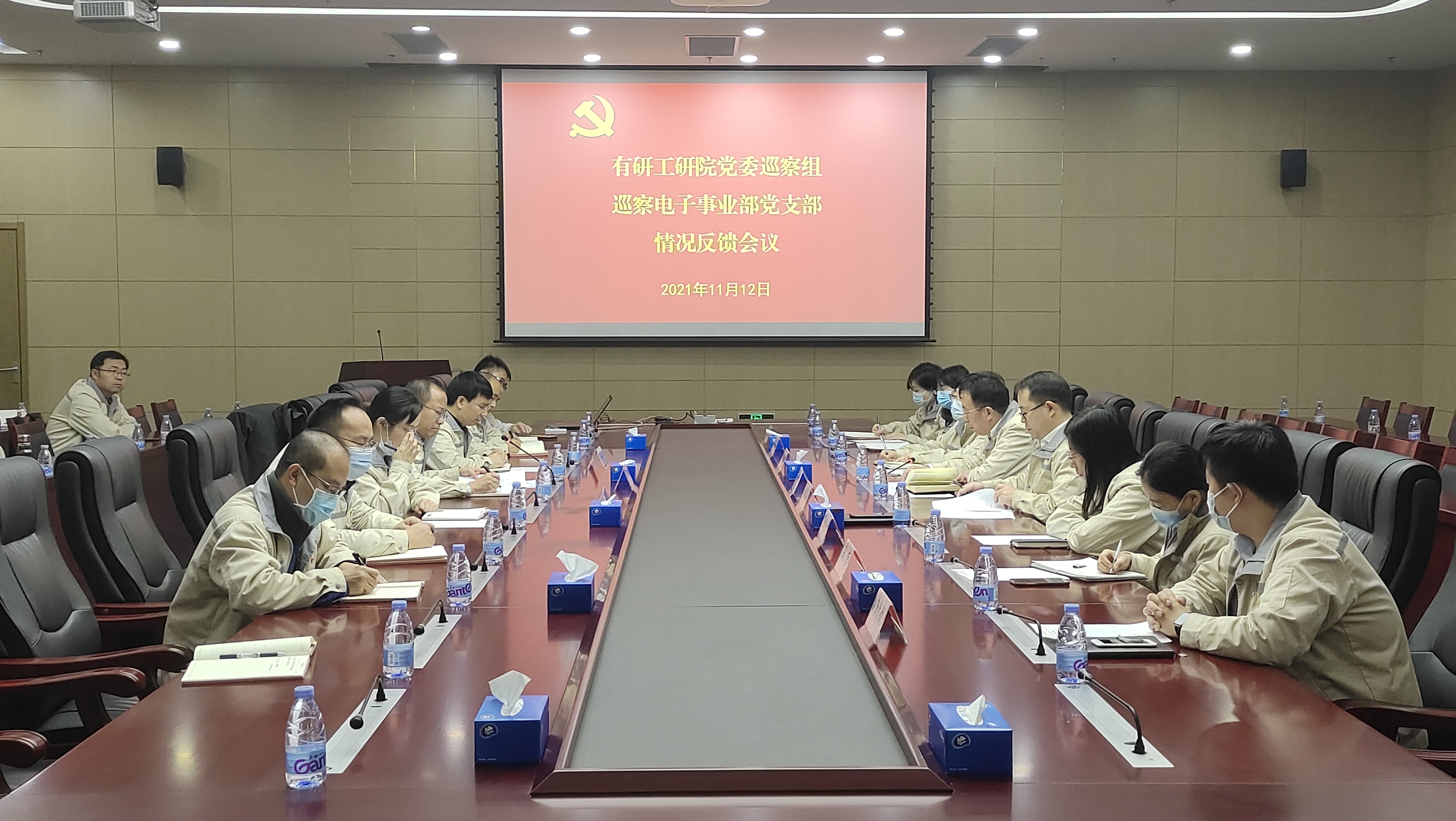 11月9日,有研工研院黨委巡察組召開巡察電子材料事業(yè)部黨支部情況反饋會。有研工研院黨委書記、巡察工作領(lǐng)導(dǎo)小組組長米緒軍,巡察組組長姚國成和全體巡察組成員,電子材料事業(yè)部黨支部全體黨員參加會議,會議由電子材料事業(yè)部黨支部紀(jì)檢委員、副總經(jīng)理楊劍主持。