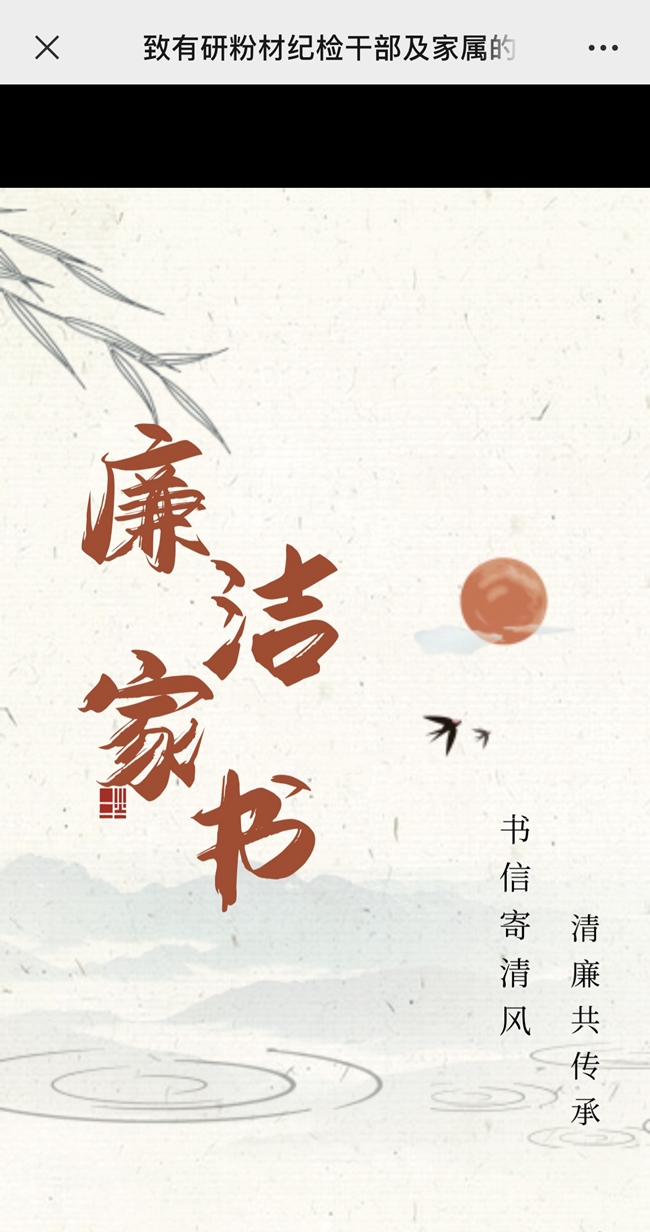為強(qiáng)化對紀(jì)檢干部“八小時(shí)外”關(guān)心關(guān)懷和監(jiān)督提醒,有研粉材紀(jì)委發(fā)放給公司紀(jì)檢干部及家屬一封廉潔家書,進(jìn)一步教育黨員干部廉潔用權(quán)、廉潔修身、廉潔齊家,同時(shí)倡導(dǎo)家屬當(dāng)好“廉內(nèi)助”,發(fā)揮好家庭助學(xué)助廉作用,共同營造向上向善的家庭文明新風(fēng)尚。