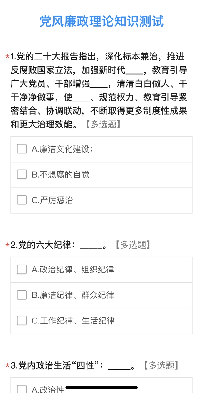 為檢驗(yàn)和提升公司黨風(fēng)廉政建設(shè)宣傳教育成效,真實(shí)了解黨員干部對公司黨風(fēng)廉政建設(shè)基礎(chǔ)知識的學(xué)習(xí)情況,公司紀(jì)委組織開展全面從嚴(yán)治黨與黨風(fēng)廉政建設(shè)應(yīng)知應(yīng)會知識測試,以考促學(xué)、以考促廉,通過學(xué)習(xí)強(qiáng)化黨風(fēng)廉政意識,引導(dǎo)黨員干部增強(qiáng)紀(jì)律規(guī)矩意識和廉潔自律意識,提高拒腐防變能力。
