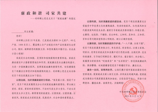 9月,有研新材黨委紀(jì)委連續(xù)第三年在全公司范圍開(kāi)展黨風(fēng)廉政教育宣傳月活動(dòng)。本次活動(dòng)以“強(qiáng)化清廉實(shí)干擔(dān)當(dāng),凝心聚力攻堅(jiān)克難”為主題,聚焦“五個(gè)一”的具體任務(wù),結(jié)合紀(jì)檢干部隊(duì)伍教育整頓工作,通過(guò)黨規(guī)黨紀(jì)教育和警示宣傳引導(dǎo),促使廣大黨員干部堅(jiān)定理想信念,牢記初心使命,強(qiáng)化責(zé)任意識(shí),嚴(yán)守紀(jì)律規(guī)矩,勇奉獻(xiàn)、敢擔(dān)當(dāng),全力以赴完成全年各項(xiàng)任務(wù)指標(biāo)。