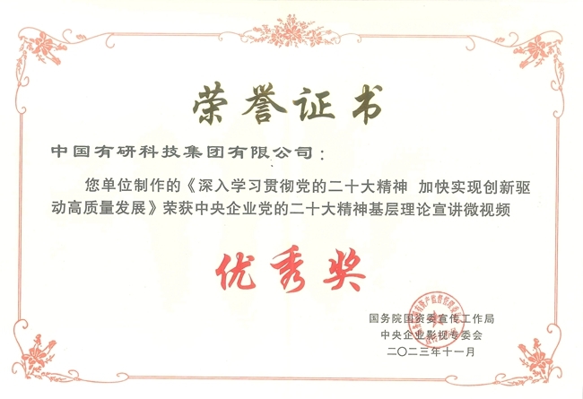 11月7日,國務(wù)院國資委舉辦了“2023年中央企業(yè)社會主義核心價值觀主題微電影(微視頻)展映發(fā)布儀式”,活動現(xiàn)場發(fā)布了大國重器、敬業(yè)奉獻、社會責任、初心使命等四個主題100部優(yōu)秀作品,同時還發(fā)布了中央企業(yè)黨的二十大精神基層理論宣講100部優(yōu)秀微視頻。中國有研選送的視頻作品《成長——砥礪奮進70載 中國有研再出發(fā)》和《深入學(xué)習(xí)貫徹黨的二十大精神 加快實現(xiàn)創(chuàng)新驅(qū)動高質(zhì)量發(fā)展》分別入選第四屆中央企業(yè)社會主義核心價值觀主題微電影(微視頻)和中央企業(yè)黨的二十大精神基層理論宣講微視頻優(yōu)秀作品。