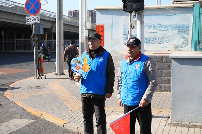 有研興友主動認(rèn)領(lǐng)行人密集、車流量大的北太平莊橋下北三環(huán)中路與北太平莊路交匯路口作為志愿服務(wù)點(diǎn),在高峰時段開展志愿服務(wù)?;顒又校驹刚呤殖旨t旗和指引牌,通過文明用語和規(guī)范動作,引導(dǎo)行人、非機(jī)動車不闖紅燈、不逆行,引導(dǎo)機(jī)動車文明駕駛、禮讓行人,并對不文明現(xiàn)象予以勸導(dǎo)和制止。遇到問路的群眾,他們耐心幫忙查找地圖、規(guī)劃線路,提供指引服務(wù)。近日,北京氣溫驟降、寒風(fēng)刺骨,但絲毫沒有影響志愿者的服務(wù)熱情。志愿者們的愛心、耐心、細(xì)心凝聚成這個初冬最溫暖的音符,弘揚(yáng)了奉獻(xiàn)、友愛、互助、進(jìn)步的志愿服務(wù)精神,展現(xiàn)了“爭做文明先行者”的風(fēng)采。志愿服務(wù)活動推動了路口交通狀況改善和行人文明出行意識提升,保障了群眾平安出行。