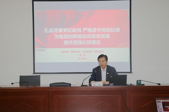 黃倬以《扎實開展黨紀教育 嚴格遵守黨的紀律 為集團創(chuàng)新驅(qū)動高質(zhì)量發(fā)展提供堅強紀律保證》為題,從條例歷次修訂講起,闡釋條例修訂與時俱進、問題導向的特點,突出進一步嚴明政治紀律和政治規(guī)矩、帶動各項紀律全面從嚴,釋放越來越嚴的強烈信號,結(jié)合國資央企相關(guān)典型案例,詳細解讀開展黨紀學習教育的重要意義、新修訂《條例》的主要內(nèi)容以及《條例》對黨員領(lǐng)導干部的新要求,教育引導廣大黨員明紀、學紀、知紀、守紀。