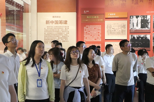 在香山革命紀(jì)念館,大家駐足于《為新中國奠基》主題展覽前, 一件件文物、一張張圖片、一段段影像資料,全景式生動呈現(xiàn)了老一輩革命家運(yùn)籌帷幄、決勝千里的恢弘篇章。在“進(jìn)京趕考”等展區(qū)前,深刻感受到了革命先輩們謙虛謹(jǐn)慎、不驕不躁、艱苦奮斗的優(yōu)良作風(fēng)和革命精神,深切感受到中國共產(chǎn)黨“一切為了人民”的初心與擔(dān)當(dāng)。
