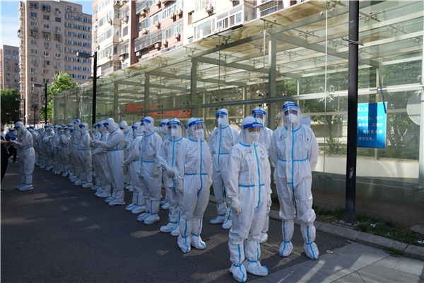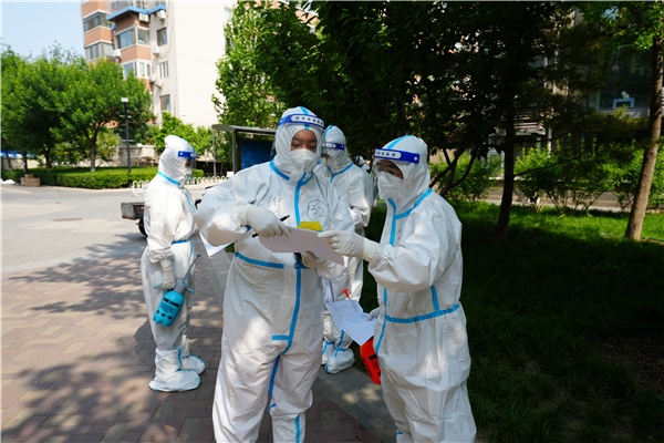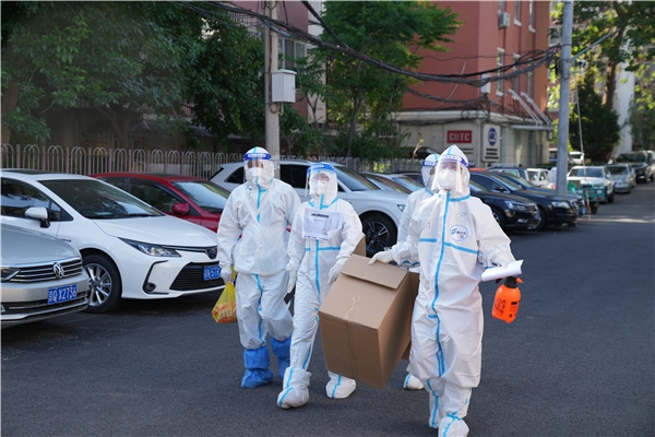 近幾日,北京正式入夏,30多度的高溫下,很多有研志愿者們第一次穿上密不透風(fēng)的防護(hù)服,又悶又熱,幾個小時都不能喝水,汗水浸透了衣服,但他們還堅持不斷對公共場所、重點點位進(jìn)行消毒消殺,一家一戶為居民清理生活垃圾,協(xié)助為居民登記購藥信息,耐心地一一解答居民的疑問,安撫大家的情緒。“請伸出雙手,我為您消毒。”“請您戴好口罩,這是對我們健康的保障。”“我們穿上這身防護(hù)服,就有責(zé)任要把每項防控措施認(rèn)真做好、落實到位,大家齊心合力,相信很快就會戰(zhàn)勝疫情。”在有研志愿者中聽到了很多這樣動人的聲音。