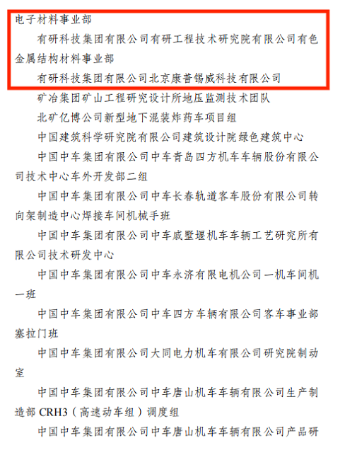 為選樹典型、表彰先進(jìn),共青團(tuán)中央聯(lián)合22家全國(guó)創(chuàng)建青年文明號(hào)活動(dòng)組委會(huì)成員單位共同開展往屆全國(guó)青年文明號(hào)星級(jí)認(rèn)定工作。經(jīng)各級(jí)青年文明號(hào)活動(dòng)組織機(jī)構(gòu)系統(tǒng)梳理、逐級(jí)復(fù)核、嚴(yán)格審查、社會(huì)公示,全國(guó)創(chuàng)建青年文明號(hào)活動(dòng)組委會(huì)發(fā)布了一星級(jí)全國(guó)青年文明號(hào)的名單。其中,中國(guó)有研7個(gè)青年集體被復(fù)核認(rèn)定為“一星級(jí)全國(guó)青年文明號(hào)”,分別是有研金屬?gòu)?fù)材技術(shù)有限公司國(guó)家有色金屬?gòu)?fù)合材料工程技術(shù)研究中心、有研稀土新材料股份有限公司磁性材料事業(yè)部、有研工程技術(shù)研究院有限公司新能源與生態(tài)環(huán)境材料事業(yè)部、有研資源環(huán)境技術(shù)研究院(北京)有限公司生物冶金國(guó)家工程實(shí)驗(yàn)室、有研工程技術(shù)研究院有限公司先進(jìn)電子材料事業(yè)部、有研工程技術(shù)研究院有限公司有色金屬結(jié)構(gòu)材料事業(yè)部、北京康普錫威科技有限公司,讓我們?yōu)檫@些優(yōu)秀青年集體打CALL!