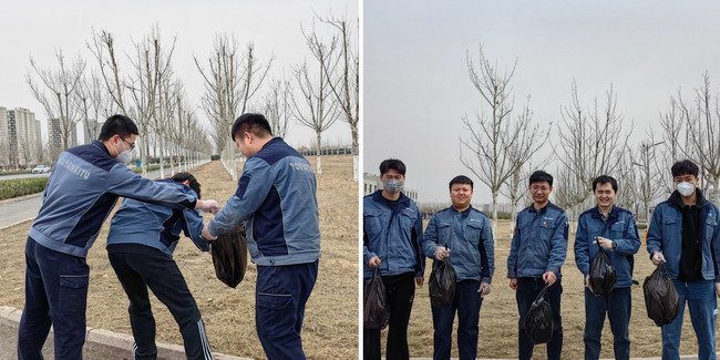 團(tuán)員青年們身穿工服,手拿垃圾袋等工具分工合作,對(duì)燕郊基地南門附近的垃圾、雜草、綠化帶里的紙屑、白色垃圾等進(jìn)行清理,形成了一道亮麗的風(fēng)景線。經(jīng)過(guò)一段時(shí)間的清理,公司南門附近馬路煥然一新。