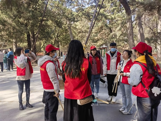 春日的頤和園風(fēng)景如畫、游人如織,環(huán)境雖好,但在不易被人注意的角落,仍有不少煙頭、食品包裝、易拉罐拉環(huán)等不易降解的垃圾存在。團(tuán)員青年通過(guò)撿拾清理垃圾,勸阻亂扔垃圾、踐踏植被等行為,為游客指引路線,以及提供其他便民服務(wù)等形式,傳承雷鋒精神,弘揚(yáng)“奉獻(xiàn)、友愛(ài)、互助、進(jìn)步”的志愿精神,在游人面前充分展現(xiàn)了國(guó)合通測(cè)青年昂揚(yáng)向上的精神風(fēng)貌。