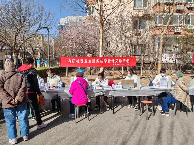 有研衛(wèi)生站的醫(yī)護人員為居民們提供了測量血氧、血壓,中醫(yī)測評等服務(wù)。職工青年和研究生志愿者積極開展法律咨詢、環(huán)保和反詐宣傳、幼兒教育咨詢,并為社區(qū)居民發(fā)放便民物品。
