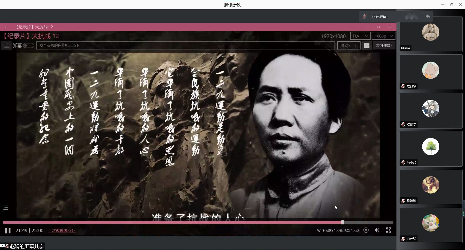 為幫助同學(xué)們?cè)敿?xì)了解“一二·九運(yùn)動(dòng)”歷史,團(tuán)支部首先組織觀看了紀(jì)錄片《大抗戰(zhàn)》第十二集(一二·九運(yùn)動(dòng)),主要講述了“九一八”事變之后,日本帝國(guó)主義加緊侵略中國(guó),在東北地區(qū)推行殖民地化統(tǒng)治的同時(shí),利用南京國(guó)民政府奉行的不抵抗政策,將侵略矛頭指向了華北地區(qū),民族危機(jī)空前嚴(yán)重。1935年12月9日,北平數(shù)千名學(xué)生舉行了抗日救國(guó)示威游行,以反對(duì)華北自治、反抗日本帝國(guó)主義為口號(hào),要求保全中國(guó)領(lǐng)土的完整,掀起了全國(guó)抗日運(yùn)動(dòng)新高潮。