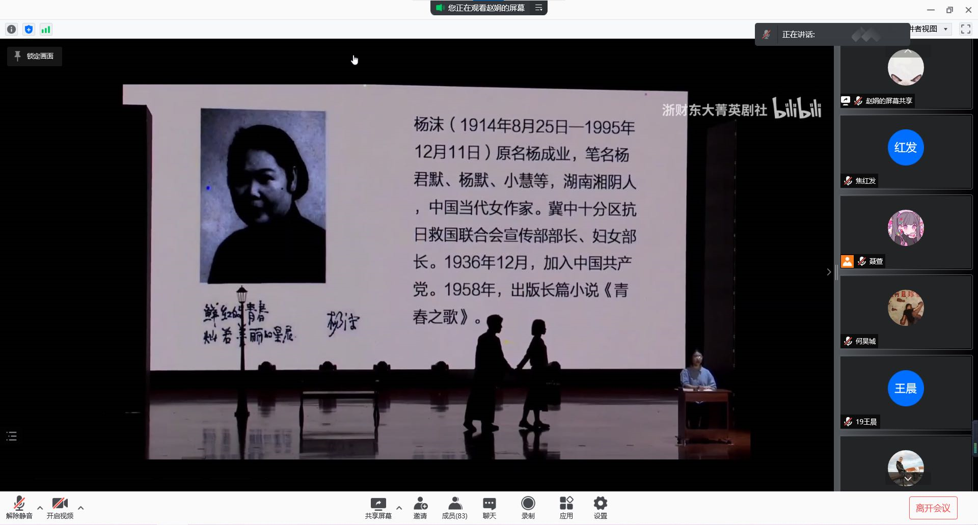 隨后,為深入體會(huì)當(dāng)時(shí)進(jìn)步青年的愛國(guó)精神,團(tuán)支部組織觀看了話劇《青春之歌》。《青春之歌》改編自楊沫同名長(zhǎng)篇小說,以楊沫親歷的生活為原型,講述了林道靜、余永澤、盧嘉川等一批具有鮮明時(shí)代特征的知識(shí)青年在特殊的歷史時(shí)刻,各自不同的人生選擇,生動(dòng)形象地展現(xiàn)了民族危亡時(shí)期革命知識(shí)分子的成長(zhǎng)史。