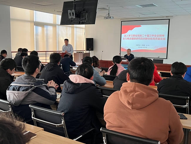 12月16日,國(guó)聯(lián)研究院組織開(kāi)展青年思政教育暨形勢(shì)輔導(dǎo)報(bào)告,公司黨委書(shū)記、總經(jīng)理徐冉以《深入學(xué)習(xí)貫徹黨的二十屆三中全會(huì)精神 全力推進(jìn)國(guó)聯(lián)研究院創(chuàng)新創(chuàng)收高質(zhì)量發(fā)展》為題專(zhuān)題授課。國(guó)聯(lián)研究院團(tuán)支部書(shū)記蘇子龍主持會(huì)議,公司團(tuán)員青年、在讀研究生參加會(huì)議。