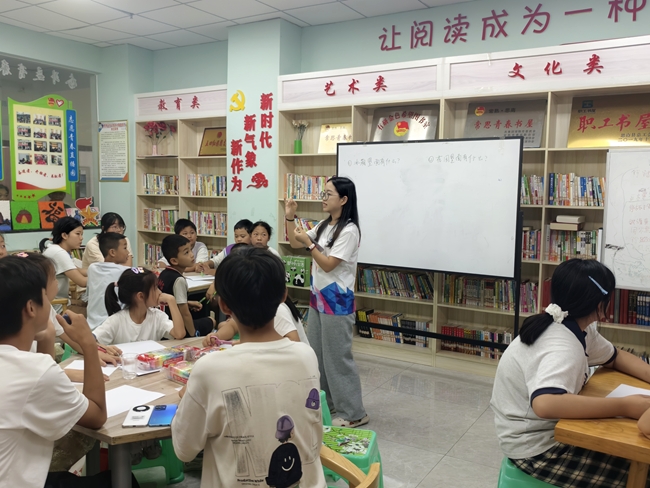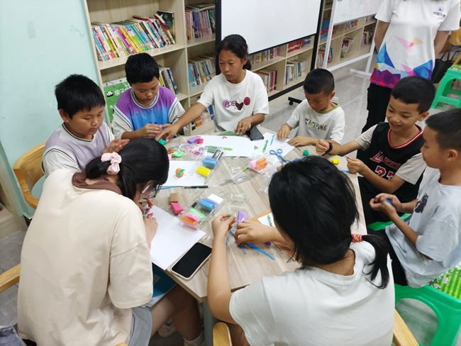 支教活動(dòng)課程設(shè)計(jì)秉持著“勞逸結(jié)合,寓教于樂(lè)”的理念,開(kāi)設(shè)了語(yǔ)文、數(shù)學(xué)、英語(yǔ)、科學(xué)等學(xué)科類課程,以及手工、美術(shù)、音樂(lè)、文體等素拓類課程。采取積分獎(jiǎng)勵(lì)制度激發(fā)學(xué)生參與課堂的積極性,并根據(jù)學(xué)生學(xué)段分布情況,適當(dāng)開(kāi)展分班教學(xué)。