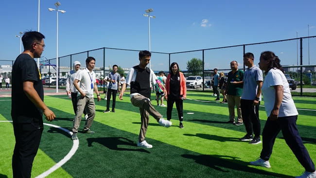 為全面落實有研集團(tuán)青年精神素養(yǎng)提升工程實施方案要求,以昂揚的精神面貌迎接黨的二十大勝利召開,2022年7月7日下午,由有研硅團(tuán)總支、有研硅工會和山東有研半導(dǎo)體工會聯(lián)合舉辦的山東有研半導(dǎo)體2022年首屆職工趣味運動會在德州廠區(qū)足球場順利開幕。此次運動會吸引了15支代表隊,共計120余人參加。比賽項目包括定點投籃、折返跑接力、集體跳長繩、踢毽子和踢足球擊水瓶等項目。
