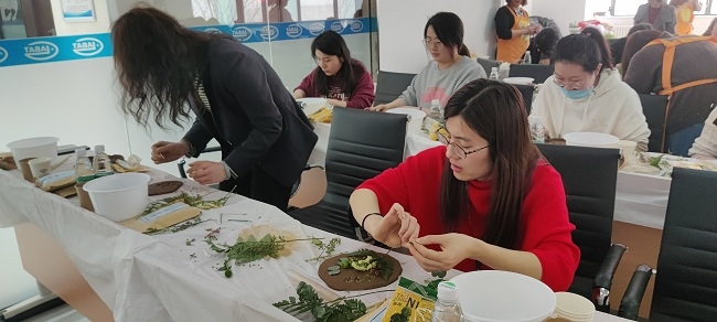 活動(dòng)現(xiàn)場(chǎng),女同胞們?cè)诶蠋煹闹v解指導(dǎo)下,認(rèn)真挑選、充分想象、精巧構(gòu)思,完全沉浸在拓印創(chuàng)作中。她們根據(jù)植物形貌、樣式不同,精心組織、搭配、構(gòu)圖、拓印、澆筑,用靈巧的雙手,將植物最美瞬間保留在柔軟的陶泥之中,制作出一幅幅化石一般、創(chuàng)意十足的拓印作品,展現(xiàn)出積極樂(lè)觀、熱愛(ài)生活的精神面貌。