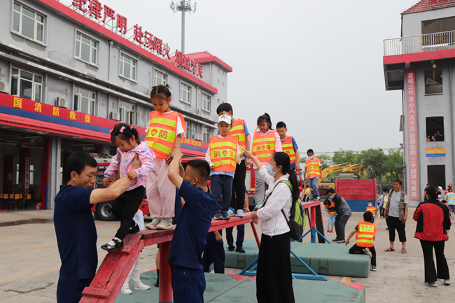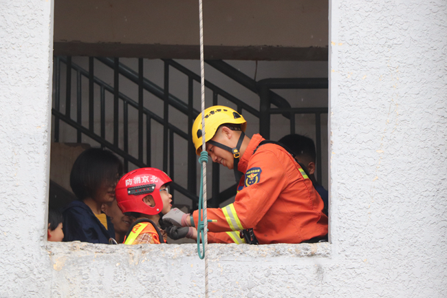 上午9點(diǎn),在北京市懷柔區(qū)消防支隊(duì)雁棲中隊(duì),消防員叔叔首先展示了穿越火場(chǎng)、高空速降、登梯、水帶保齡球、消防繩結(jié)等日常訓(xùn)練科目,干凈利索的救援動(dòng)作、訓(xùn)練有素的戰(zhàn)斗作風(fēng)贏得陣陣掌聲。鈴鈴鈴……演習(xí)中恰逢急促的警鈴響起,消防員們迅速著裝、登車、出警,雷厲風(fēng)行而又井然有序,展現(xiàn)了“烈火英雄”們的英姿颯爽。