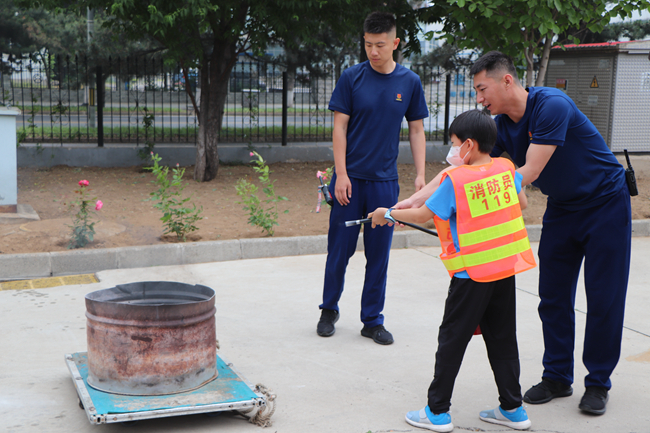 在消防員叔叔引導(dǎo)下,孩子們有序參觀了神秘的消防站、整潔的宿舍、莊嚴(yán)的榮譽(yù)室,零距離了解了消防救援服裝、救援裝備,特別是消防車的內(nèi)部構(gòu)造及用途。在模擬火災(zāi)真實(shí)場(chǎng)景中,孩子們認(rèn)真學(xué)習(xí)濃煙下的逃生方法,學(xué)習(xí)使用滅火器,體驗(yàn)消防水槍的壓力……小朋友們踴躍上前,操作體驗(yàn)各個(gè)環(huán)節(jié),上了一堂生動(dòng)有趣的消防教育課。