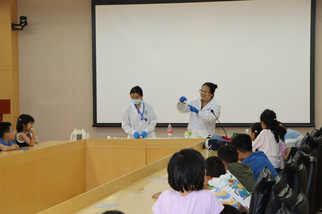 告別消防站后,孩子們一同前往懷柔科創(chuàng)園,參觀父母的工作場(chǎng)所。國(guó)合通測(cè)的科技工作者,為孩子們表演了一場(chǎng)神奇有趣的“科學(xué)小實(shí)驗(yàn)”,可樂(lè)變水、茶水變墨水、化學(xué)密信、泡泡龍等“小魔法”,讓孩子們大呼神奇,玩中學(xué)、學(xué)中玩,極大地激發(fā)了小朋友們科學(xué)探究的興趣,讓科學(xué)的種子在孩子們心中慢慢生根發(fā)芽。