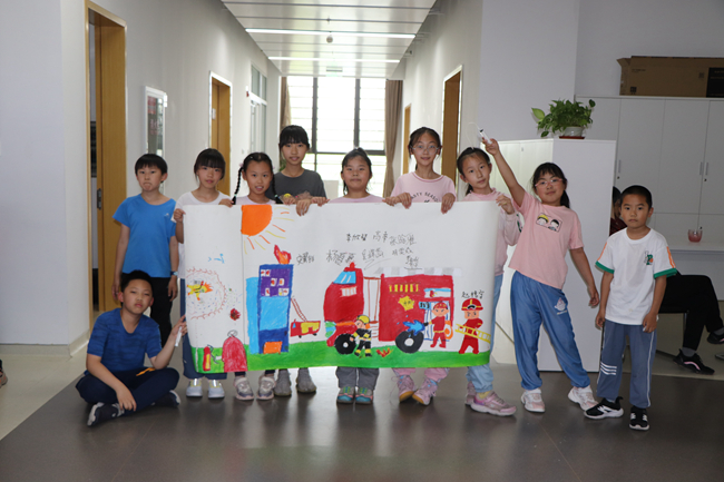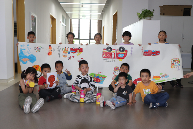 活動(dòng)最后,小朋友們紛紛拿起畫筆,共同描繪“我心中的消防員”巨幅畫。豐富的色彩、偉岸的形象,每一筆每一畫都充滿了對(duì)消防員叔叔們的感謝。這個(gè)兒童節(jié),豐富而多彩!