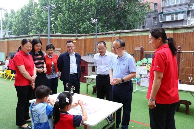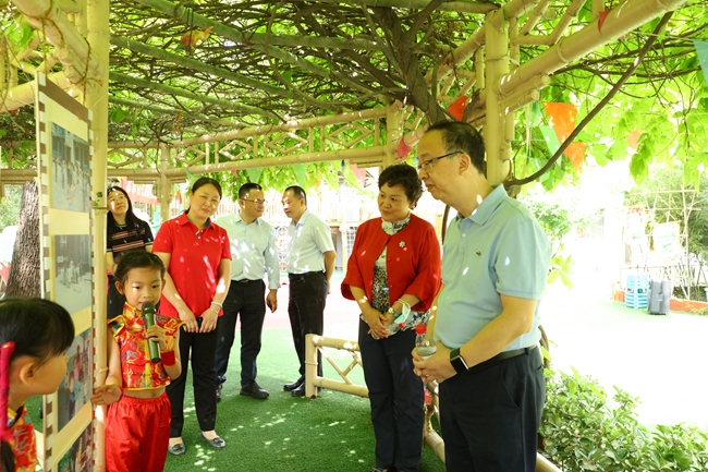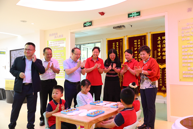 毛昌輝觀看了幼兒園豐富多彩的迎六一活動并聽取了活動介紹,肯定了教職員工付出的努力,并參與了水拓畫、筆墨童心等游戲項(xiàng)目。