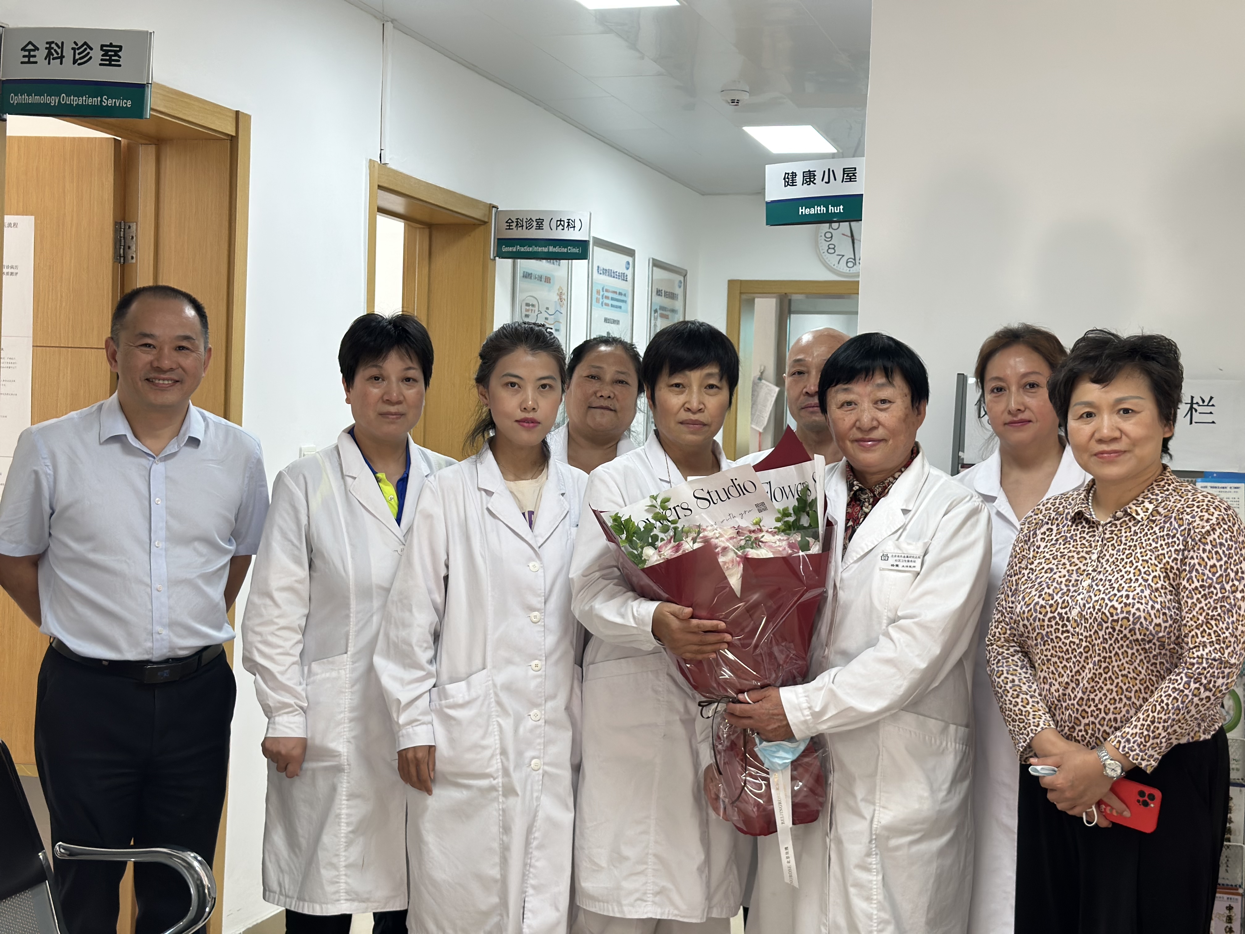 沈健一行先后走訪了掛號(hào)室、內(nèi)科診室、藥房,與醫(yī)護(hù)人員親切交談,了解工作和生活狀況,送上鮮花和祝福,對(duì)她們?cè)诨鶎有l(wèi)生健康工作中做出的貢獻(xiàn)和辛勤付出表示感謝。