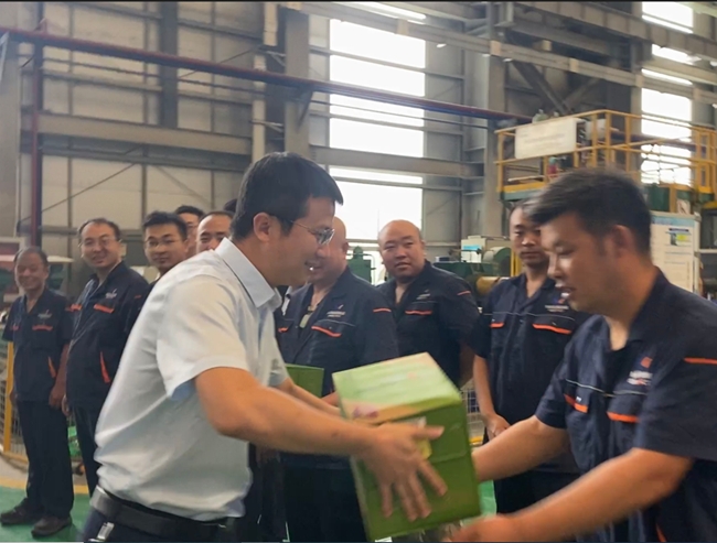 集團全體領導班子成員分別深入北京懷柔、昌平,河北廊坊、燕郊,山東德州、樂陵等園區(qū),走進車間和班組,看望慰問高溫作業(yè)一線職工,將集團黨委的關心關懷關愛送到基層、把精心準備的防暑降溫慰問品送到職工手上。領導班子與一線職工親切交談,仔細詢問生產、生活情況和身體狀況,囑咐職工注意防暑降溫,注意身體健康和個人安全。同時要求各單位抓好安全生產工作,堅決遏制安全事故發(fā)生,妥善安排班次和職工作息時間,讓職工能夠安心工作、舒心生活。