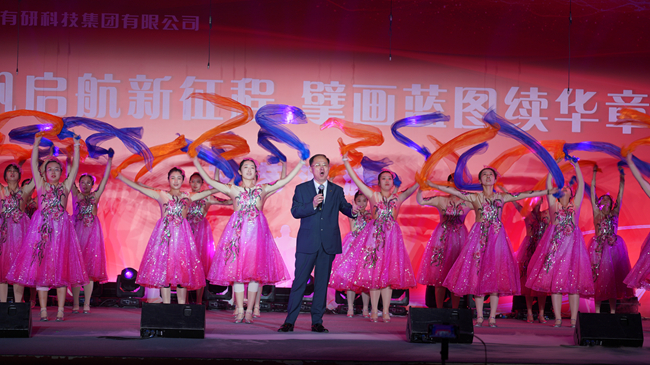 文藝匯演節(jié)目形式多樣,內(nèi)容豐富,包括大合唱、小合唱、獨(dú)唱、歌曲聯(lián)唱、越劇、扇子舞、新疆舞、街舞、配樂(lè)詩(shī)朗誦、器樂(lè)合奏等,還有幼兒園小朋友帶來(lái)的國(guó)學(xué)操。整臺(tái)匯演在集團(tuán)職能部門的大合唱《光榮與夢(mèng)想》中拉開(kāi)帷幕,歌聲嘹亮、氣勢(shì)磅礴,振奮人心。開(kāi)場(chǎng)后精彩紛呈的節(jié)目將現(xiàn)場(chǎng)氣氛推向一個(gè)又一個(gè)高潮,配樂(lè)詩(shī)朗誦《有研之歌》講述了中國(guó)有研自1952年成立以來(lái),篳路藍(lán)縷,薪火相傳,勇毅前行的光榮歷程,直擊人心的朗誦內(nèi)容震撼著每一位在場(chǎng)的有研人,引起了在場(chǎng)觀眾的強(qiáng)烈共鳴,大家心潮澎湃,深受鼓舞。越劇節(jié)目《梁山伯與祝英臺(tái):十八相送》唱腔優(yōu)美,令人沉醉,體現(xiàn)了有研人對(duì)中華優(yōu)秀傳統(tǒng)文化的傳承和一貫秉持的文化自信力量。集團(tuán)領(lǐng)導(dǎo)獨(dú)唱《天邊》,引起全場(chǎng)轟動(dòng),現(xiàn)場(chǎng)響起持續(xù)熱烈的掌聲和喝彩聲。文藝匯演在集團(tuán)領(lǐng)導(dǎo)領(lǐng)唱《我和我的祖國(guó)》的歌伴舞節(jié)目中完美收官,全體集團(tuán)領(lǐng)導(dǎo)走上舞臺(tái),與演員代表和全場(chǎng)觀眾合唱,謳歌偉大的黨、強(qiáng)大的祖國(guó)、美好的時(shí)代、幸福的生活,展現(xiàn)出有研人奮進(jìn)新征程,共筑有研夢(mèng)的豪邁力量,為文藝匯演劃上了圓滿句號(hào)。