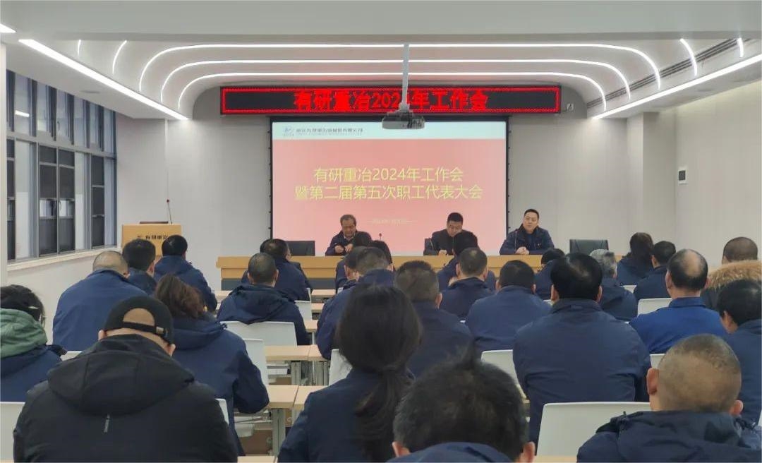 1月30日,有研重冶召開(kāi)2024年度工作會(huì)暨第二屆職工代表大會(huì)第五次會(huì)議,公司黨支部書(shū)記、執(zhí)行董事、總經(jīng)理李占榮作工作報(bào)告,公司班子成員、中層管理人員、優(yōu)秀員工、職工代表共計(jì)40余人參加會(huì)議,會(huì)議由公司副總經(jīng)理王毅主持。