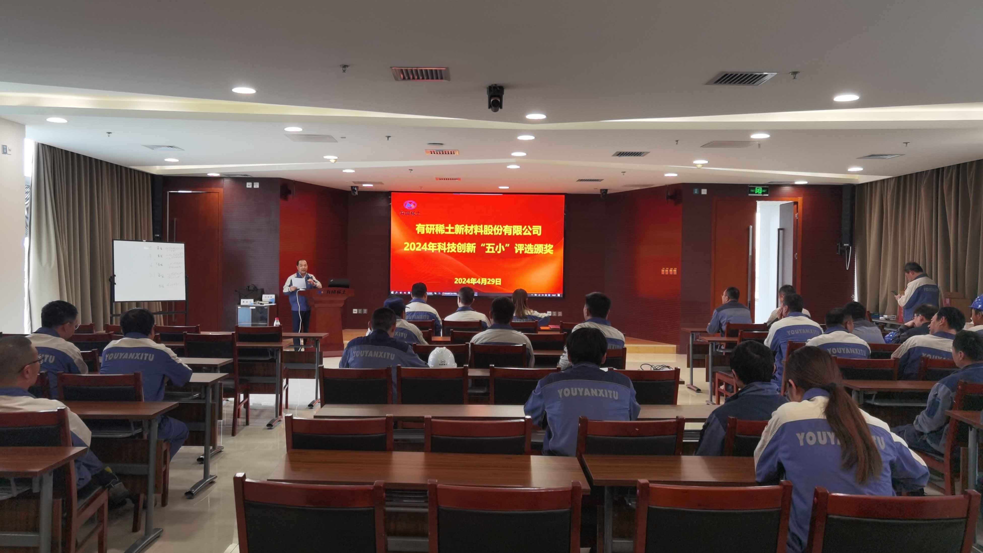 4月29日,有研稀土在燕郊基地召開(kāi)了科技創(chuàng)新“五小”表彰大會(huì),公司領(lǐng)導(dǎo)班子成員、各部門(mén)負(fù)責(zé)人及獲獎(jiǎng)人員50余人參加了會(huì)議。