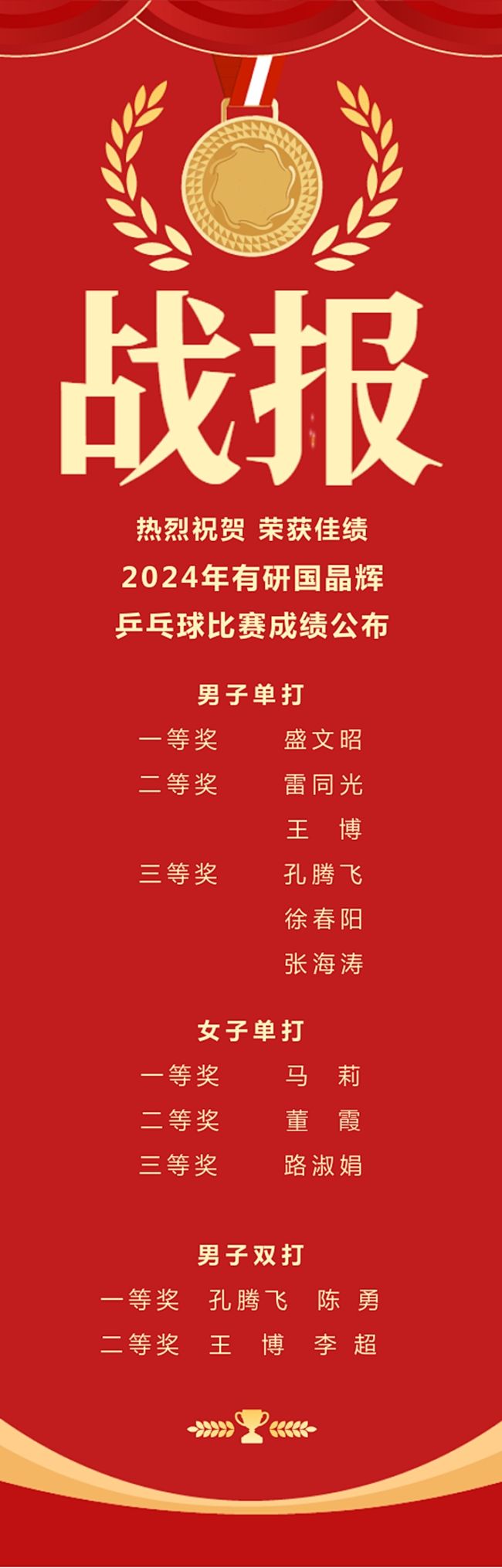 由有研國晶輝工會舉辦的職工乒乓球比賽經(jīng)過數(shù)日的激烈角逐于近日落幕。本次比賽吸引了公司眾多乒乓球愛好者熱情參與,比賽設(shè)男子單打、女子單打和男子雙打三個項目。