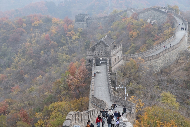 小伙伴們集體出發(fā),一步步拾級(jí)而上,沿著登山步道抵達(dá)6號(hào)、8號(hào)、10號(hào)烽火臺(tái)。放眼望去,長(zhǎng)城內(nèi)外層林盡染,紅黃橙綠各色交織,形成一幅絕美的秋日畫(huà)卷。小伙伴們?nèi)宄扇海蝰v足拍照,或親切交流,或指點(diǎn)江山,或憑樓遠(yuǎn)眺,在領(lǐng)略祖國(guó)大好河山的同時(shí),感受長(zhǎng)城獨(dú)特的建筑結(jié)構(gòu),探尋歷史的演進(jìn)變遷與長(zhǎng)城文化的交流碰撞,感受自然與人文的完美結(jié)合。