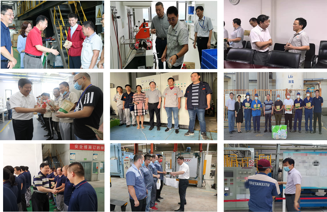 近日,集團(tuán)全體領(lǐng)導(dǎo)班子成員分別深入懷柔、昌平、順義、燕郊、廊坊等園區(qū),走進(jìn)車間和班組,看望慰問高溫作業(yè)一線員工和因病以及近期因水災(zāi)等致困的困難職工,給他們送去慰問品和慰問金。領(lǐng)導(dǎo)與職工們親切交談,仔細(xì)詢問生產(chǎn)、生活情況和身體狀況,對(duì)奮斗在一線的職工表示感謝,囑咐現(xiàn)場(chǎng)人員注意防暑降溫,加強(qiáng)疫情期間的自身防護(hù)意識(shí),希望困難職工遇到困難時(shí)想到組織,同時(shí)鼓勵(lì)他們堅(jiān)定信心,積極面對(duì)。