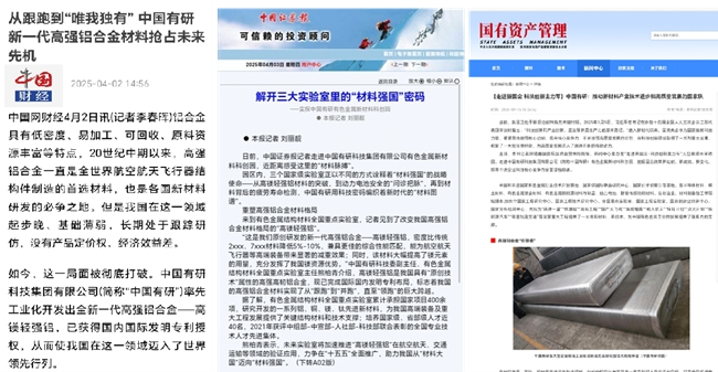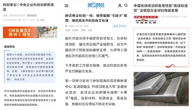 7月20日,《人民日報(bào)》頭版頭條刊發(fā)年中經(jīng)濟(jì)觀察,報(bào)道了中國有研科技成果轉(zhuǎn)化最新進(jìn)展。近期,新華社、《科技日報(bào)》、中國網(wǎng)財(cái)經(jīng)、國資小新、《中國證券報(bào)》等多家主流媒體,持續(xù)關(guān)注報(bào)道中國有研科技創(chuàng)新的重要進(jìn)展,其中,中國有研“高鎂輕強(qiáng)鋁”的誕生之路持續(xù)受到社會廣泛關(guān)注。