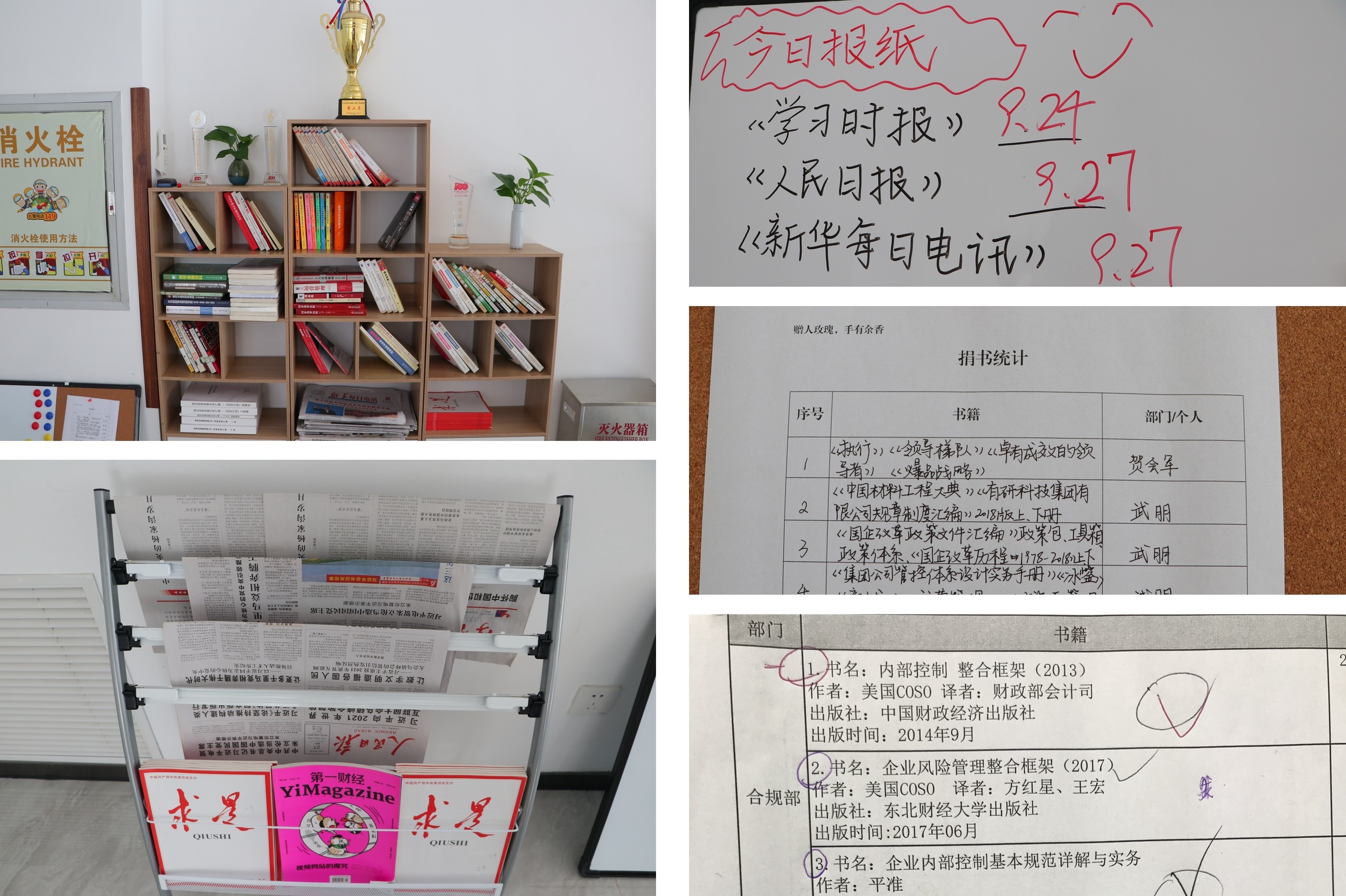 為了豐富員工的文化生活,加強理論學習,打造“學習型”團隊,有研粉材設立了圖書角,購置了《人民日報》《學習時報》《哈佛商業(yè)評論》報刊,并開展圖書漂流活動,鼓勵員工們共享家中閑置的好書,共收到包括《領導梯隊》《薛兆豐經(jīng)濟學講義》《半小時漫畫經(jīng)濟學》在內的30余本書籍。此外,有研粉材黨委辦公室還向各部門征集所需專業(yè)書籍,已完成包括《企業(yè)風險管理整合框架》《上市公司執(zhí)行企業(yè)會計準責案例解析》《專職黨務工作者使用手冊》在內的近20本書籍的采購工作。