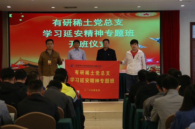 開(kāi)班儀式上,延安市委黨校原副校長(zhǎng)韓東峰介紹了延安的歷史背景、地域資源和發(fā)展現(xiàn)狀。有研稀土黨總支書(shū)記、總經(jīng)理劉榮輝做開(kāi)班動(dòng)員講話。他強(qiáng)調(diào),全黨正在開(kāi)展學(xué)習(xí)貫徹習(xí)近平新時(shí)代中國(guó)特色社會(huì)主義思想主題教育,我們要堅(jiān)定正確政治方向,深入學(xué)習(xí)貫徹習(xí)近平總書(shū)記關(guān)于稀土產(chǎn)業(yè)發(fā)展的重要指示精神,進(jìn)一步把握新時(shí)代高質(zhì)量發(fā)展的實(shí)踐要求,努力在延安精神中汲取奮進(jìn)之力,為加快打造稀土原創(chuàng)技術(shù)策源地、建設(shè)稀土材料創(chuàng)新高地、引領(lǐng)稀土行業(yè)科技發(fā)展貢獻(xiàn)力量。