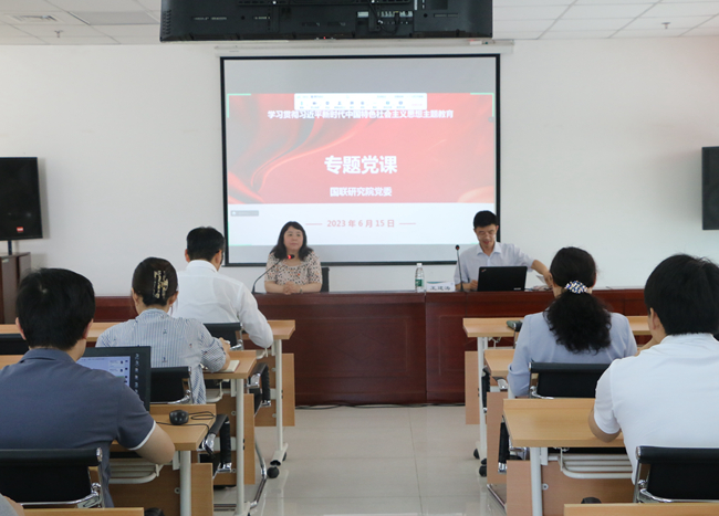 按照學(xué)習(xí)貫徹習(xí)近平新時代中國特色社會主義思想主題教育工作計劃安排,6月15日,國聯(lián)研究院黨委組織開展主題教育專題學(xué)習(xí),國聯(lián)研究院黨委委員、副總經(jīng)理王建濤講授專題黨課,題目是《不斷提高科技創(chuàng)新的能力》,國聯(lián)研究院黨委副書記、紀(jì)委書記羅茜主持會議,公司黨委班子成員、全體黨員參加學(xué)習(xí)。