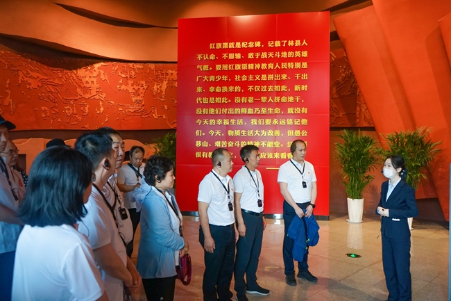 活動(dòng)中,全體黨員追尋總書(shū)記足跡,參觀紅旗渠紀(jì)念館,在講解員的帶領(lǐng)下,依次參觀了“序廳”“旱魔”“奇跡”“豐碑”“夢(mèng)想”“精神”等展廳,了解林縣人民飽受干旱煎熬進(jìn)而修渠的感人故事,觀看當(dāng)年修渠使用的工具和大量珍貴的歷史圖片,全面了解了林縣歷史、紅旗渠的由來(lái)及建造的全過(guò)程。隨后,觀看紀(jì)錄片《紅旗渠》,沉浸式重溫那段戰(zhàn)天斗地,“誓把河山重安排”的光輝歷程。