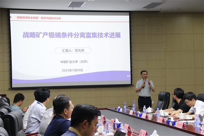 為深入開展學(xué)習(xí)貫徹習(xí)近平新時(shí)代中國特色社會(huì)主義思想主題教育,強(qiáng)化以學(xué)鑄魂、以學(xué)增智、以學(xué)正風(fēng)、以學(xué)促干,7月9日,有研資環(huán)院第一黨支部與中國礦業(yè)大學(xué)(北京)礦加系黨支部開展“戰(zhàn)略資源安全保障”聯(lián)學(xué)共建主題黨日活動(dòng)。有研資環(huán)院黨總支委員、第一黨支部書記、副總經(jīng)理溫建康,第一黨支部組織委員兼青年委員、綠色選冶事業(yè)部總經(jīng)理尚鶴,第一黨支部宣傳委員兼紀(jì)檢委員、分析測(cè)試中心主任屈偉;中國礦業(yè)大學(xué)(北京)礦加系黨支部書記張志軍、礦加系主任鄧久帥參加活動(dòng)。有研資環(huán)院第一黨支部相關(guān)黨員,高品質(zhì)有色金屬綠色特種冶金國家工程研究中心部分研究生;中國礦業(yè)大學(xué)(北京)礦加系黨支部相關(guān)黨員教師,2021級(jí)本科生,共75人參加活動(dòng)。