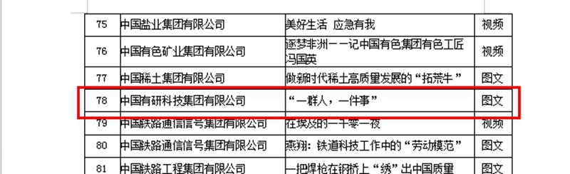 8月30日,由國資委宣傳局、人民網(wǎng)聯(lián)合舉辦的“書寫中國式現(xiàn)代化央企答卷”第六屆中央企業(yè)優(yōu)秀故事創(chuàng)作展示活動發(fā)布會在北京舉行。中國有研選送的兩篇文章作品從參賽的2800余件作品中脫穎而出,有研新材《“一群人,一件事”》獲得三等獎,有研工研院《李程遠:在鄉(xiāng)村振興道路上奮勇前進》獲得優(yōu)秀獎,這些優(yōu)秀故事的展示引起強烈反響,彰顯了中央企業(yè)在中國式現(xiàn)代化新征程中的擔(dān)當(dāng)作為。